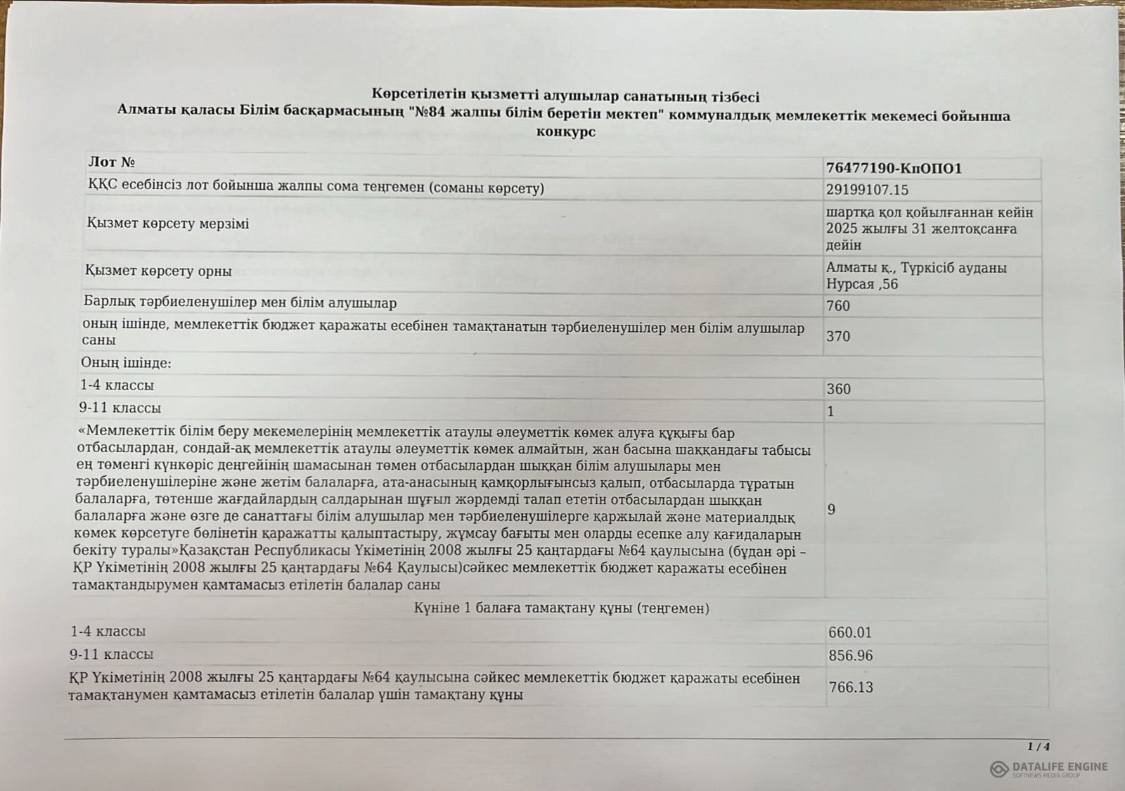 » План приобретения услуг по питанию учащихся школы 2025 год