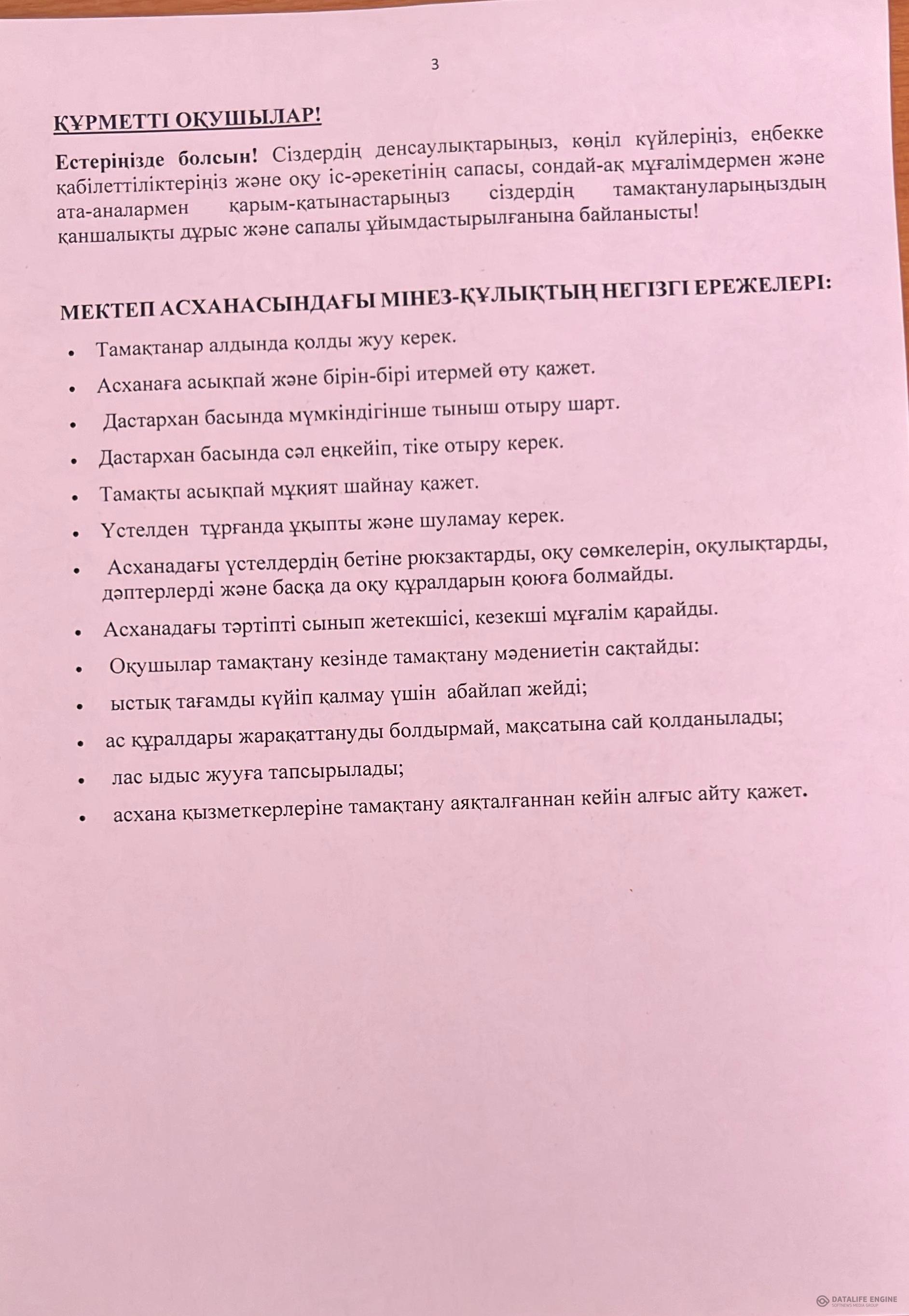 Объявление о конкурсе по выбору поставщика услуги по организации питания обучающихся в КГУ ОШ №84